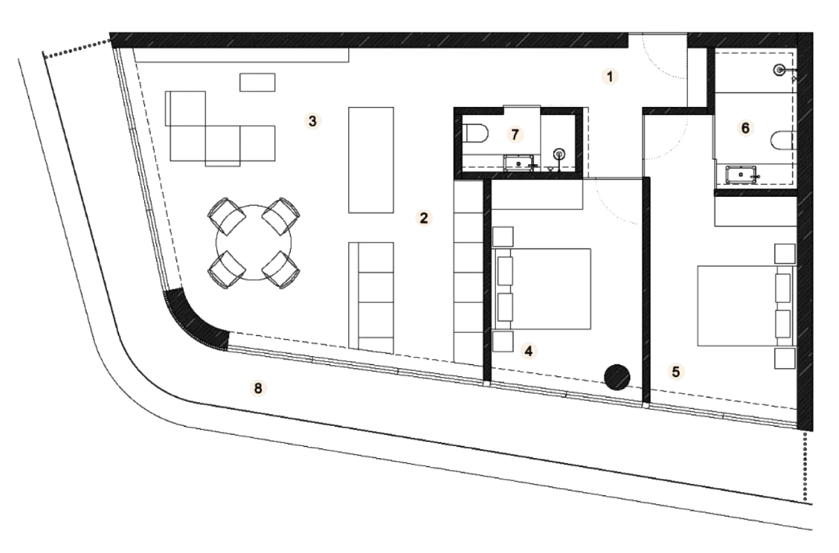 Each apartment is complemented by two individual parking spaces, which guarantee parking for four cars, one of which has a private bathroom with a shower.